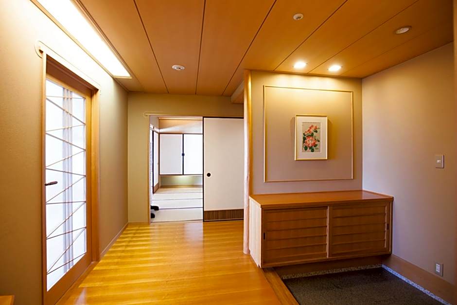 The air-conditioned quadruple room offers a flat-screen TV with satellite channels, tatami, soundproof walls, a seating area as well as mountain views. The unit offers 6 futons.